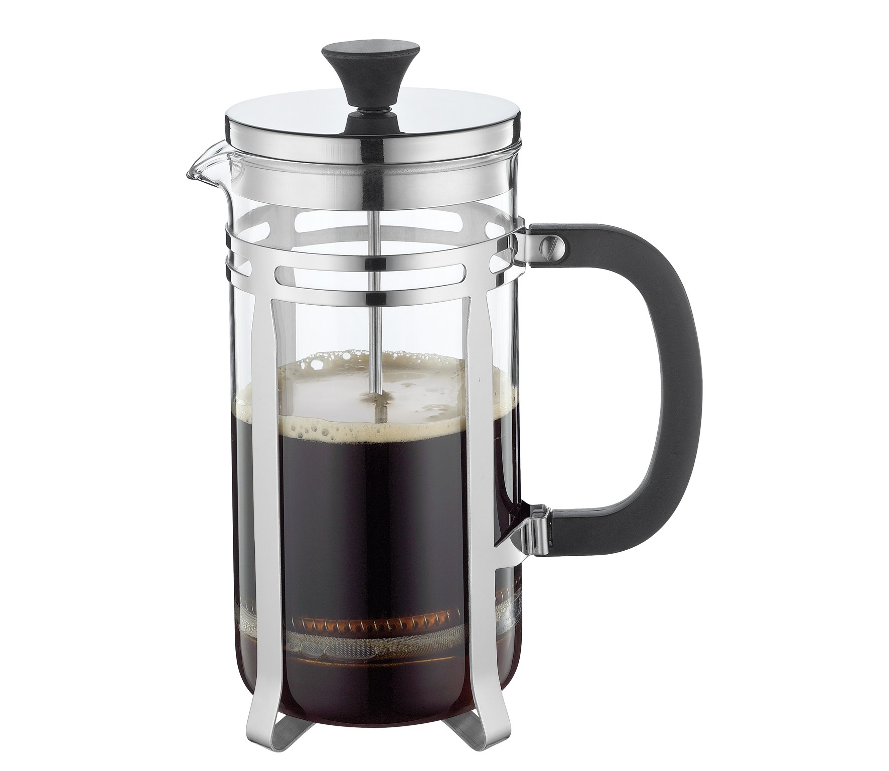Die French Press oder Siebstempelkanne gehört seit Langem zu den beliebtesten Zubereitungsarten. Da das Metallsieb die im Kaffee enthaltenen Fette und Öle nicht wie beim Papierfilter „herausfiltert“, hat der Kaffee geschmacklich mehr Fülle. Je nach Geschmack und Pulvermenge sollte die Brühzeit etwa 4 – 6 Minuten dauern.