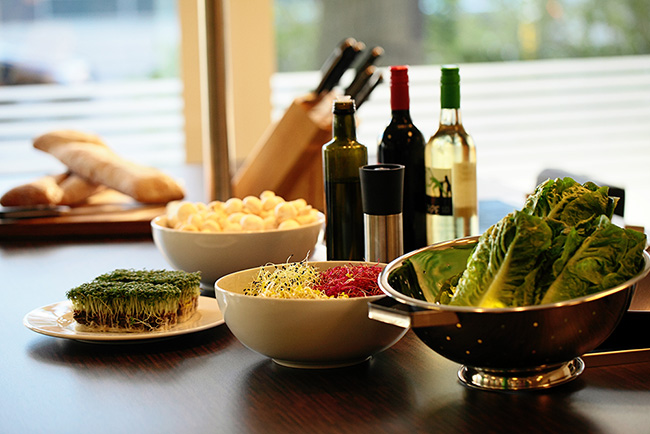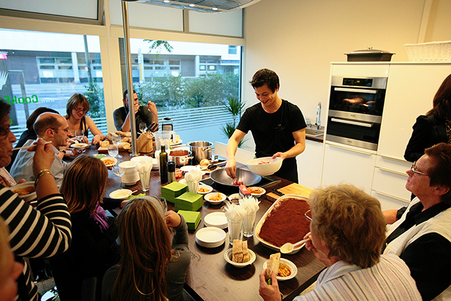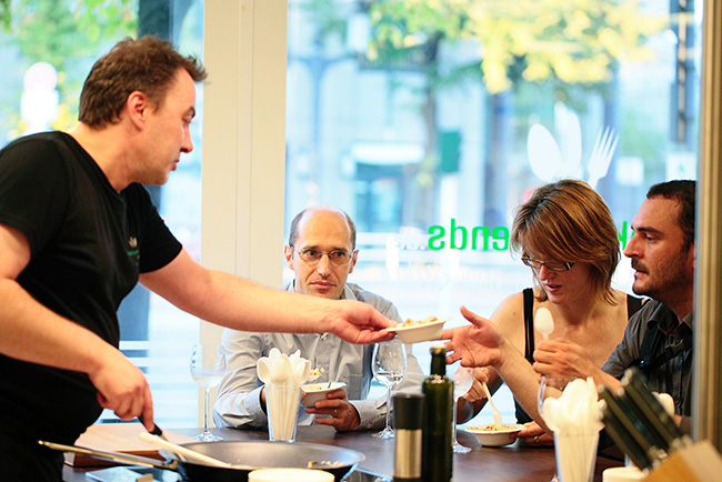 Bei uns kochst du ein leckeres 3-Gang Menü in einer komplett ausgestatteten Küche. Wir kaufen alle Zutaten dafür ein un bereiten vor. Du kochst mit hochwertigen Miele Geräten und genießt die Zeit mit deinen Freunden/Kollegen/Familie. Die Getränke sind inklusive. Koch Tips erhälst du von unserem Profi-Koch vor Ort. In ca 2 Stunden zauberst du ein leckeres Menü. Im Preis von 59€ pro Person sind 5 Stunden inklusive, so dass am Ende noch genug Zeit ist um gemeinsam zu essen und Spaß zu haben.