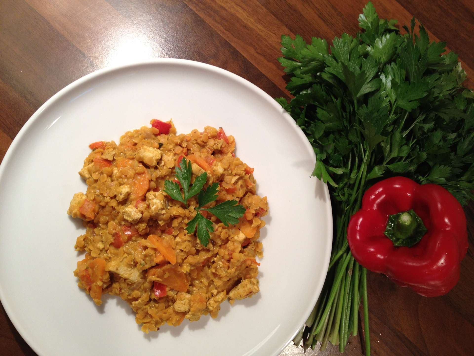 Rote Linsen mit Tofu und Curry