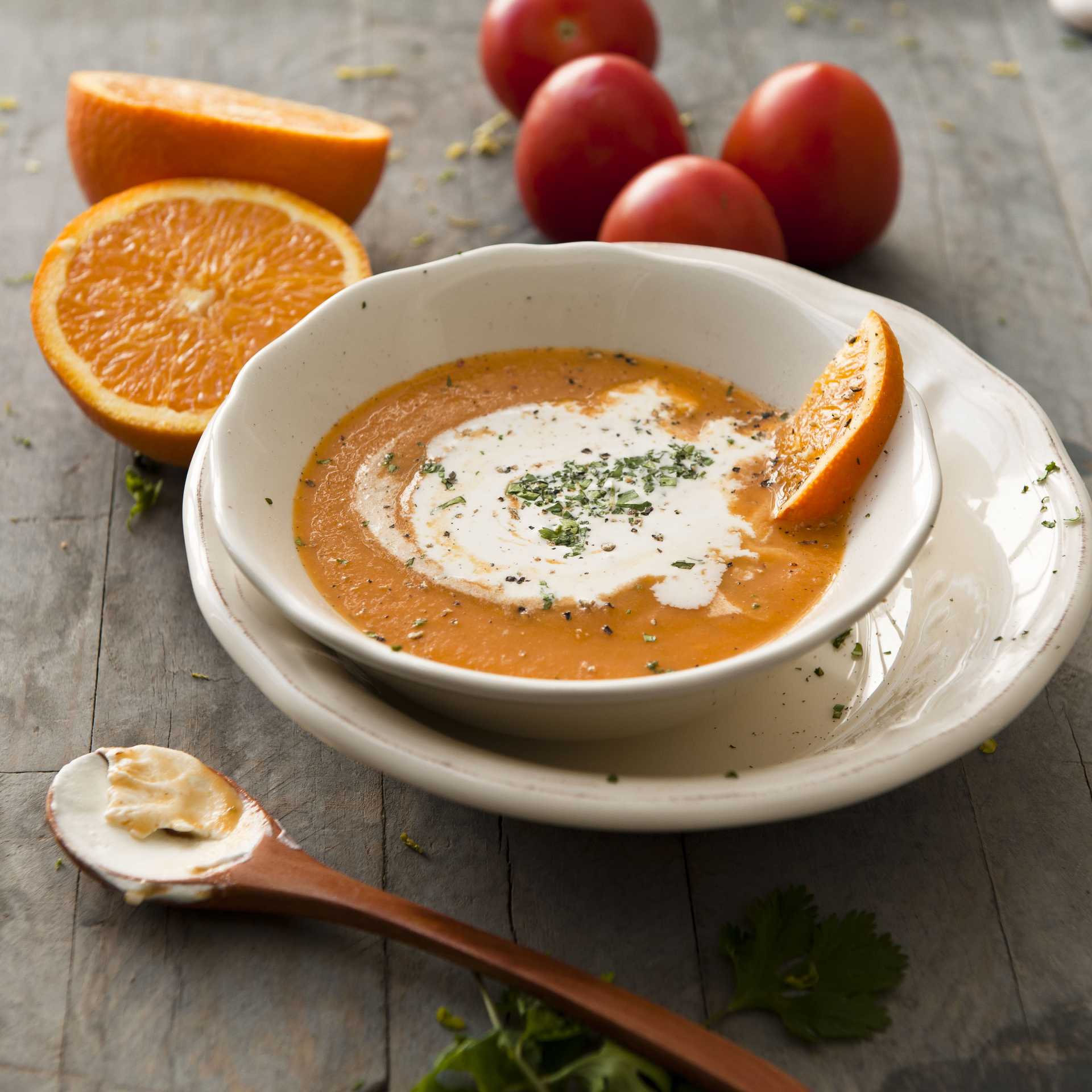 Diese mediterrane Suppe eignet sich perfekt als fruchtig erfrischendes Sommergericht. In ihr verbinden sich herzhaft aromatische Tomaten mit der puren Frische von Orangen und Joghurt. Für sie spricht ebenfalls, dass sie im Nu zubereitet ist. Dieses Rezept stammt von unserem Wissenspaten SanLucar.