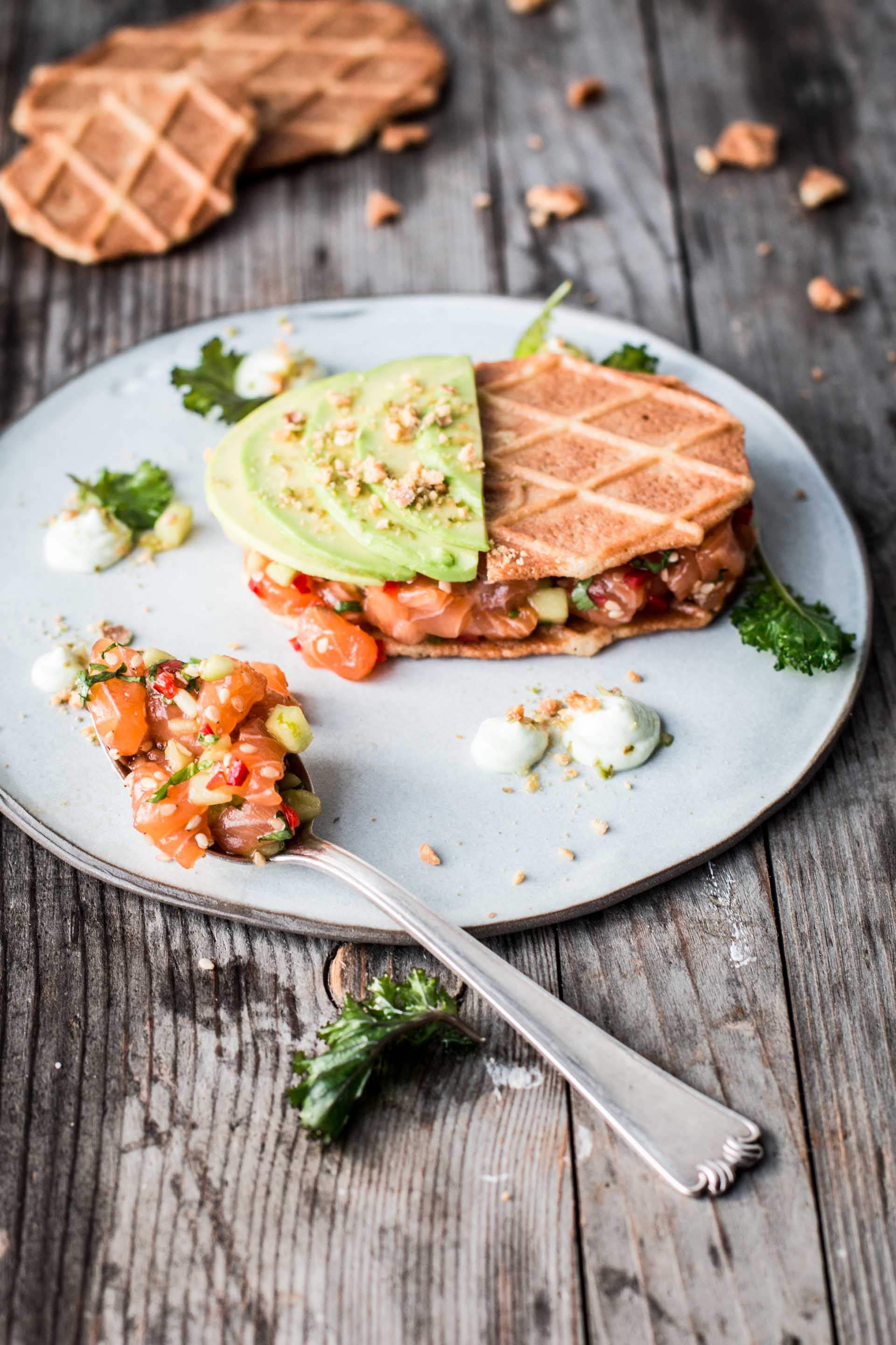 Der beliebte Fisch macht sich in fast jedem Gericht gut – doch als Tatar mit feinsten Butterwaffeln, Avocado und Wasabi wird es ein Hochgenuss. Toll für jedes Buffet oder als krönender Auftakt eines 3-Gänge-Menüs wird dieses Tatar der neue Sommerhit.